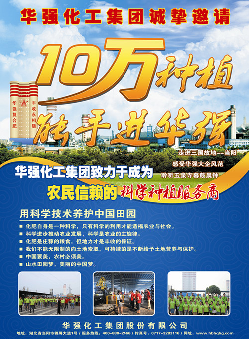 为了更好地让全国经销商和种植户了解安博站官网,致力于成为农民信赖的科学种植服务商。公司决定在全国范围内开展十万种植能手进华强活动。从今年8月起,计划在三年时间内邀请全国十万名种植能手与经销商走进华强化工实地参观考察,通过对华强化工综合实力的了解,从而提升相互合作的信心,实现合作双赢,共同发展。同时,公司将安排农业技师针对种植户的种植需求,结合当地土质,为种植户提供专业种植技术和科学施肥的现场指导,用科学技术养护中国田园,实现作物丰产。