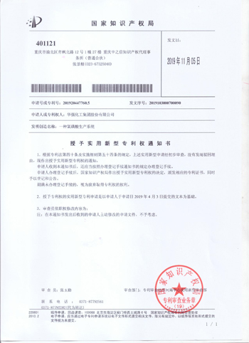 近日,公司申报的“一种氯磺酸生产系统” 、“一种蒸汽直埋管道系统”等6项实用新型专利获得国家知识产权局授权。