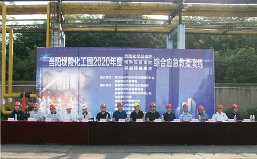 8月27日,当阳坝陵化工园2020年度危险化学品事故、特种设备事故、突发环境事故综合应急救援演练在我公司三尿罐区举行。集团公司总经理徐化林、党委副书记、工会主席王建波、副总经理杨世立出席演练活动。