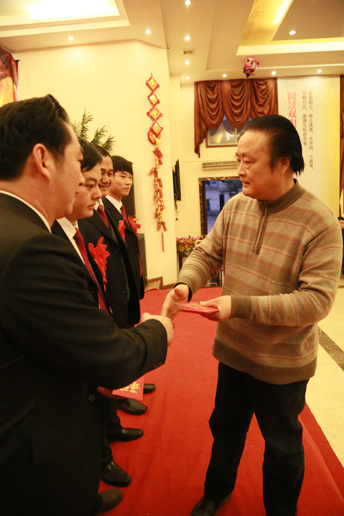 集团公司董事长、总经理余华强同志为年销5000吨复合肥的业务员颁发奖金